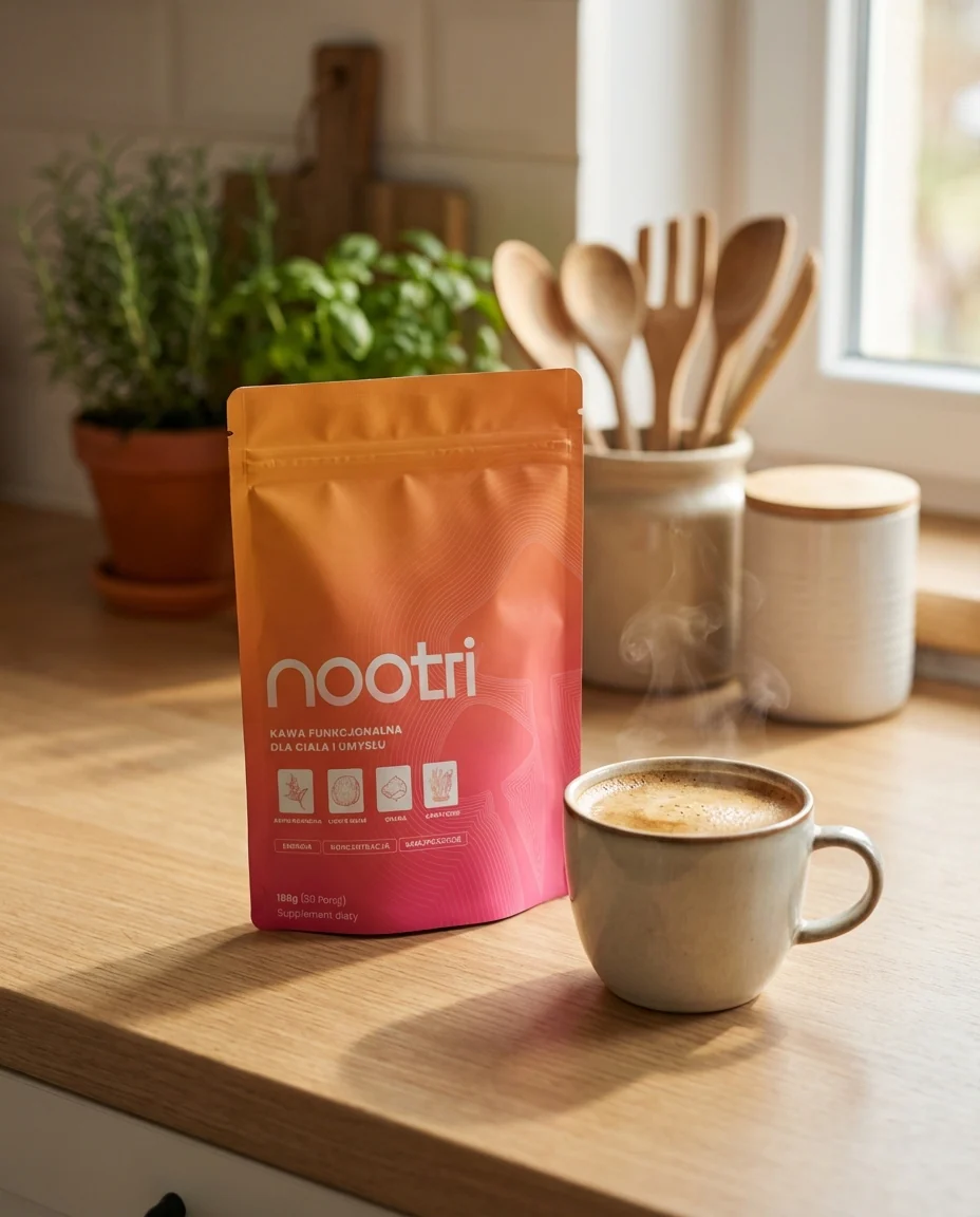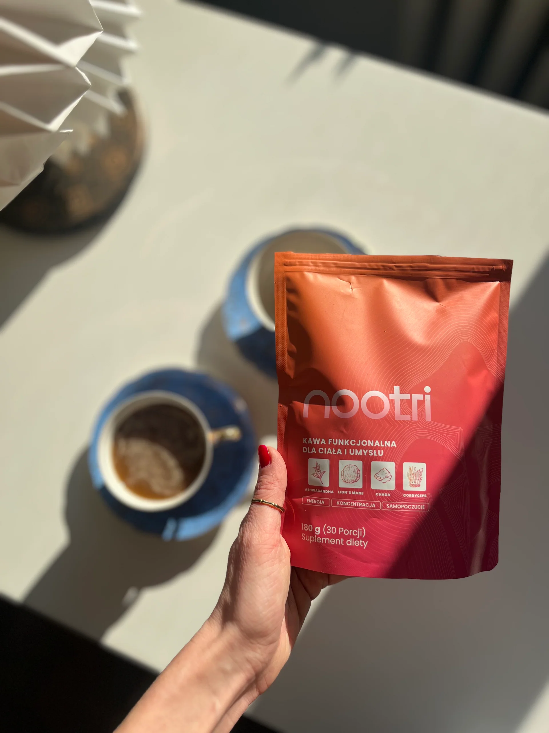 A najlepsze? Nie musiałam zmieniać niczego w swoim życiu. Po prostu zamieniłam zwykłą kawę na Kawę Funkcjonalną Nootri. Jeden prosty krok – każdego ranka.