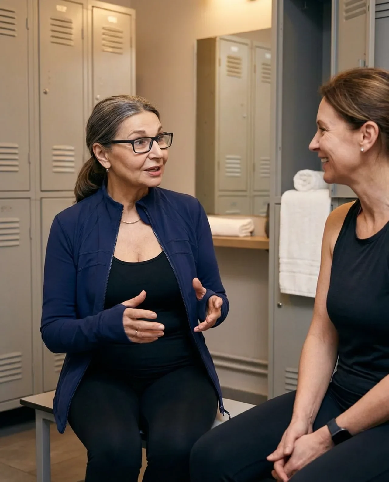 Obok mnie przebierała się kobieta w moim wieku. Spojrzała na mnie i zapytała przyjaźnie: